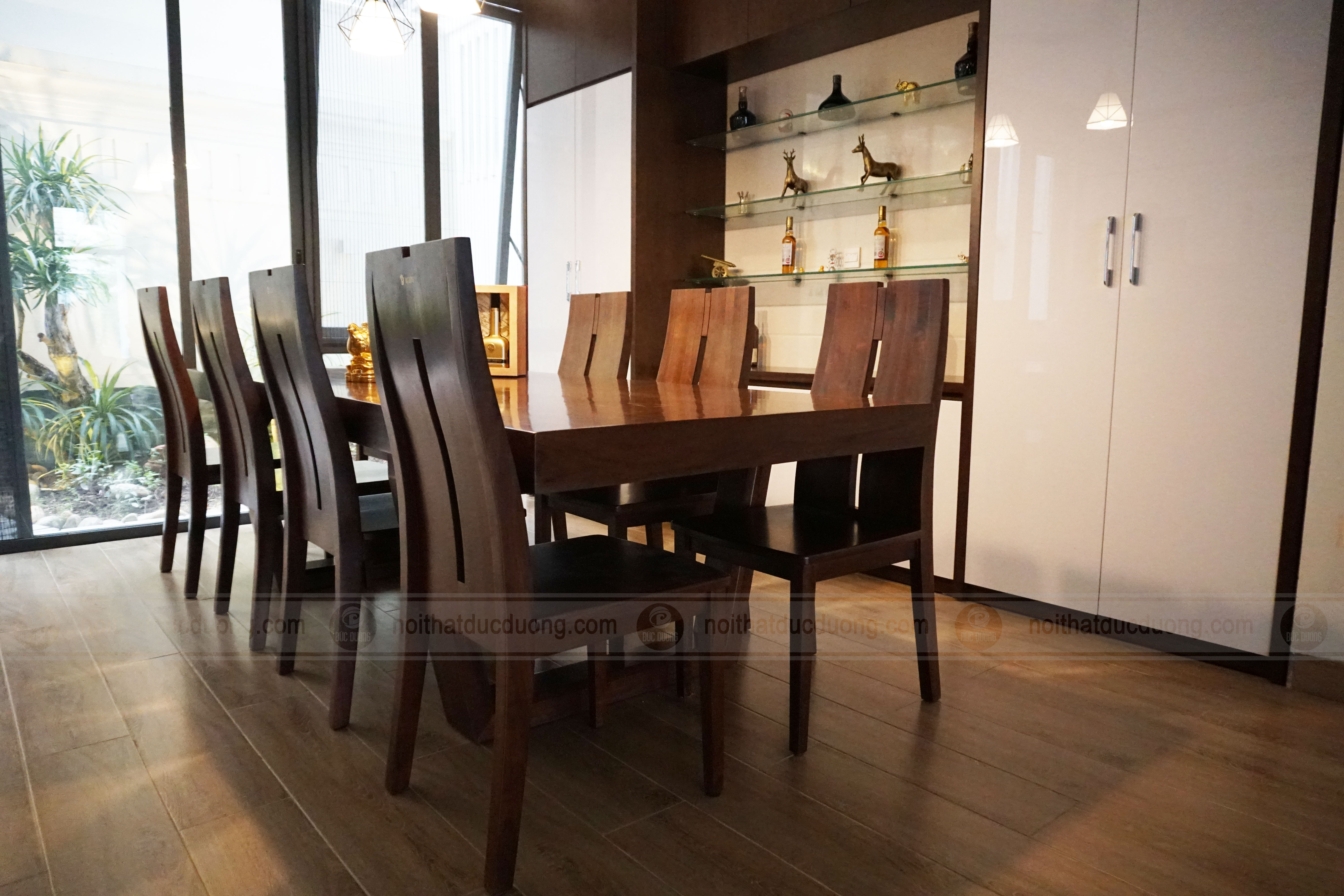 Bộ bàn ghế ăn Trevi có kích thước lớn, phù hợp không gian 150 – 200m2 (mặt sàn) giúp nhiều thành viên trong gia đình anh Minh và bạn bè quây quần bên nhau. Hơn thế nữa, bàn ăn lớn biểu hiện cho sự phóng khoáng, rộng rãi và giàu sang, uy quyền của gia chủ.